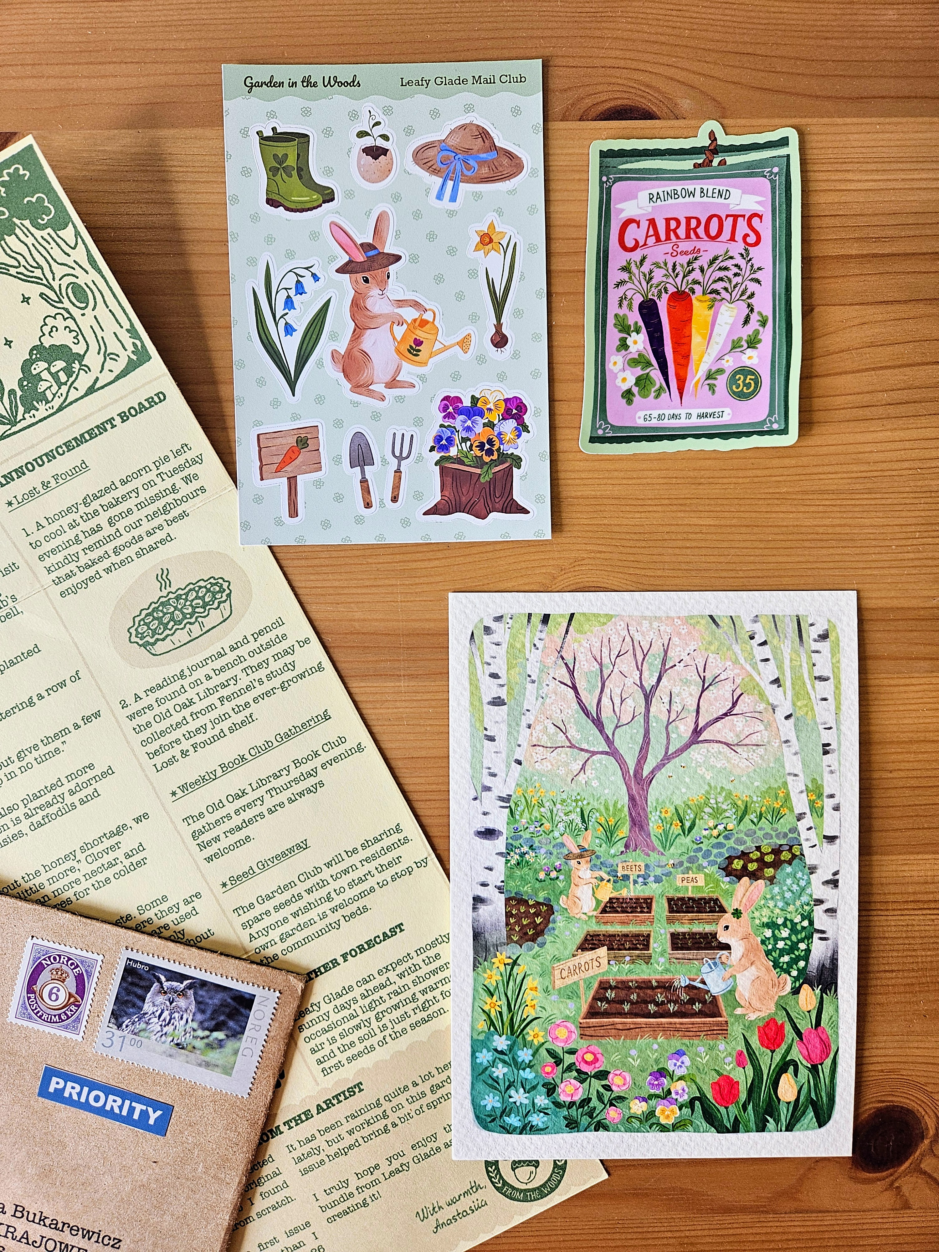 The Leafy Glade Mail Club is a monthly subscription to The Leafy Glade Observer – a monthly dispatch from the woods, delivered straight to your letterbox.